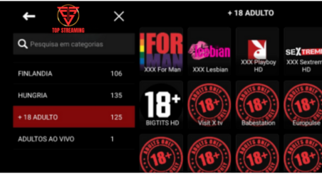 Toda a lista de canais adultos protegido com senha para bloqueio e segurança das crianças.